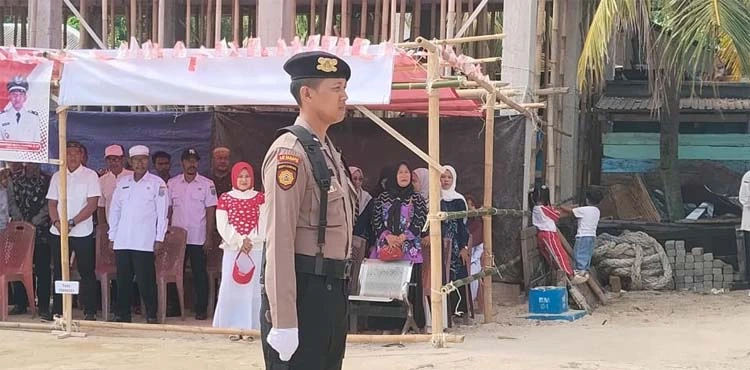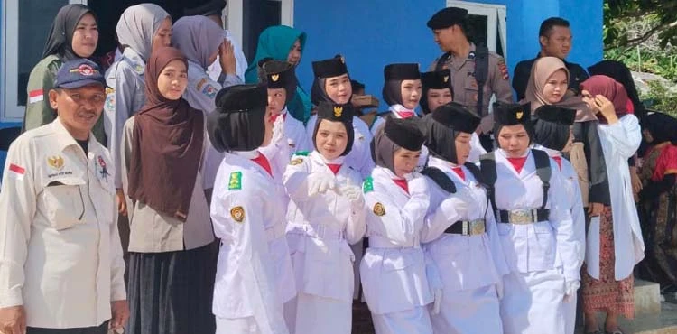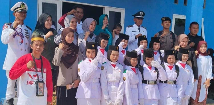Pasukan Pengibar Bendera Pusaka (Paskibraka) Desa Maradapan tampil penuh semangat saat mengibarkan Sang Merah Putih di tepi laut, sementara para peserta upacara yang terdiri dari aparat desa, tokoh masyarakat, pelajar, hingga organisasi PKK dengan tertib mengikuti jalannya prosesi.